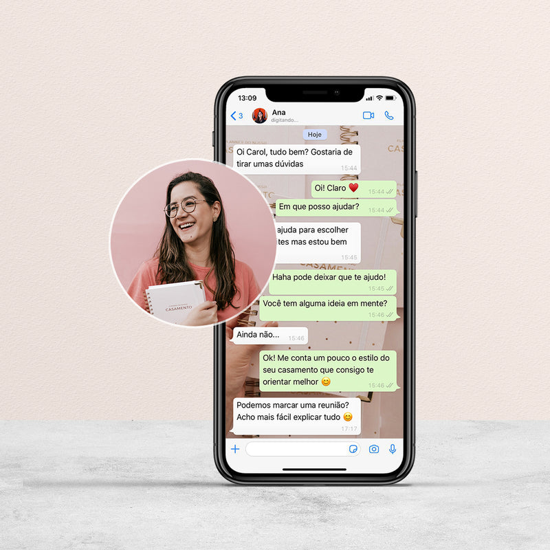 Eu, Carol, vou trabalhar diretamente com você. Vou orientar, ajudar e fazer todas as alterações necessárias para chegarmos no melhor resultado! Vamos fazer algo bem lindo pra vocês!